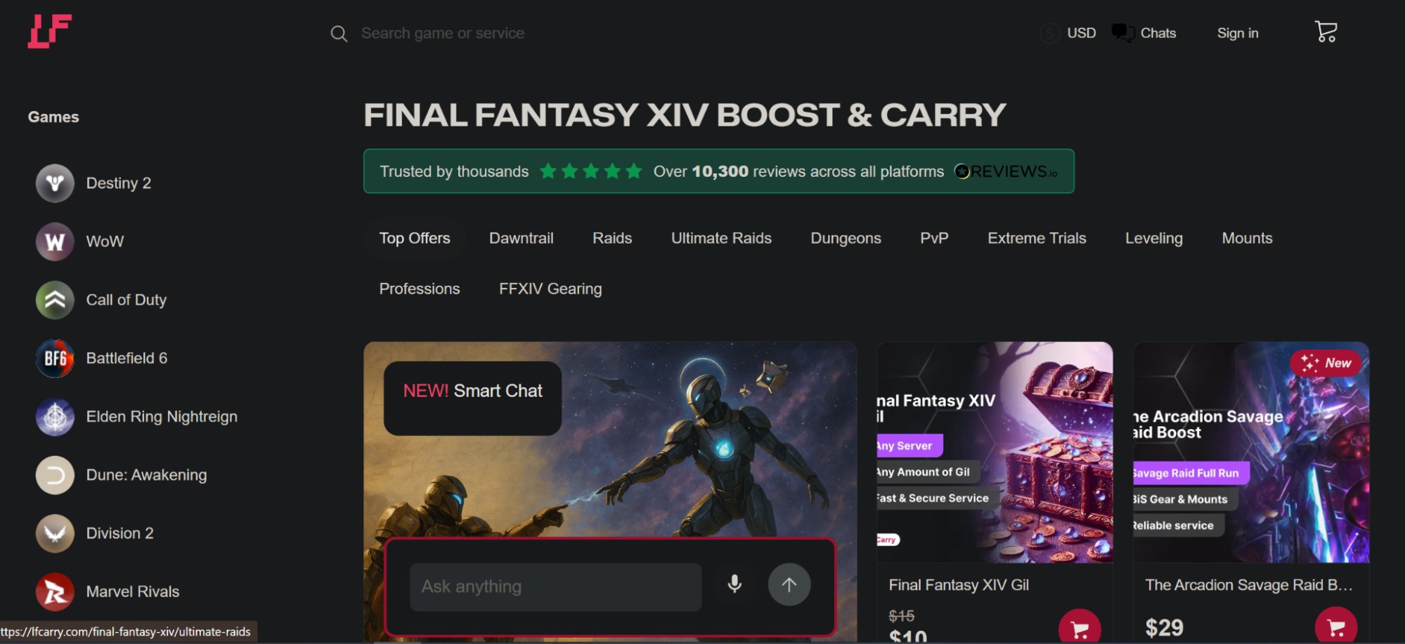 LFCarry is an international service primarily focused on boosting in MMO RPG, but it also provides the option to purchase FFXIV gil.